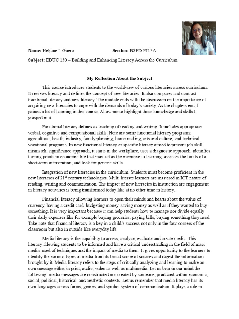 Subject: EDUC 130 – Building and Enhancing Literacy Across the Curriculum
