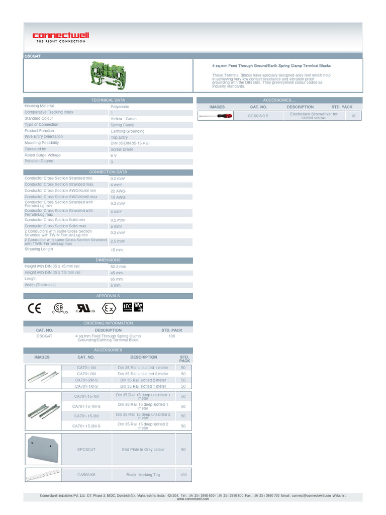 Connectwell Industries Pvt. Ltd. D7, Phase 2, MIDC, Dombivli (E), Maharashtra, India - 421204. Tel : +91 251 3980 600 / +91 251 3980 800 Fax : +91 251 3980 700 Email : connect@connectwell.com Website :