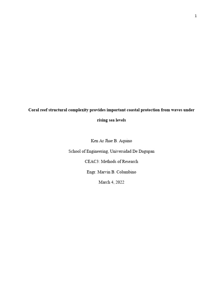 from waves under rising sea levels (2018). Coral reefs are diverse ecosystems that supports not