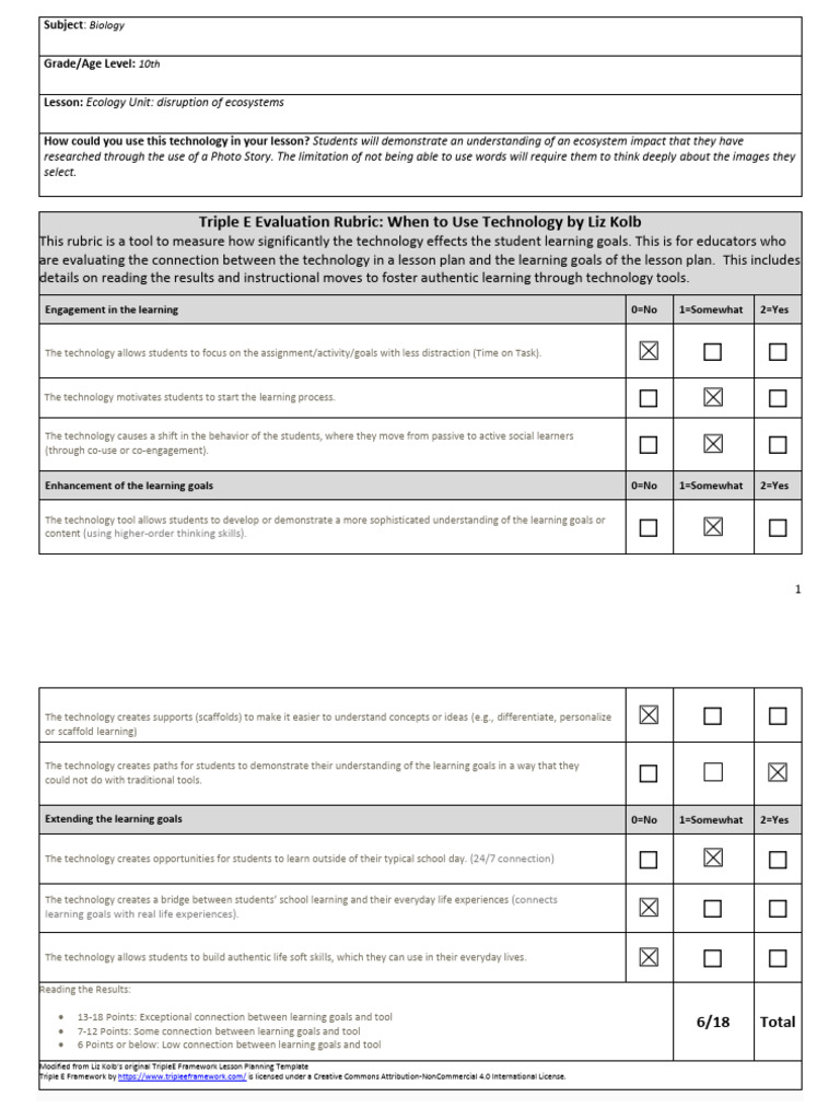 Triple E Evaluation Rubric: When to Use Technology by Liz Kolb
