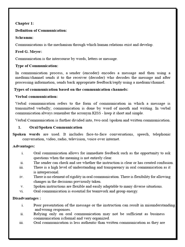 transmitted verbally; communication is done by word of mouth and writing. In verbal