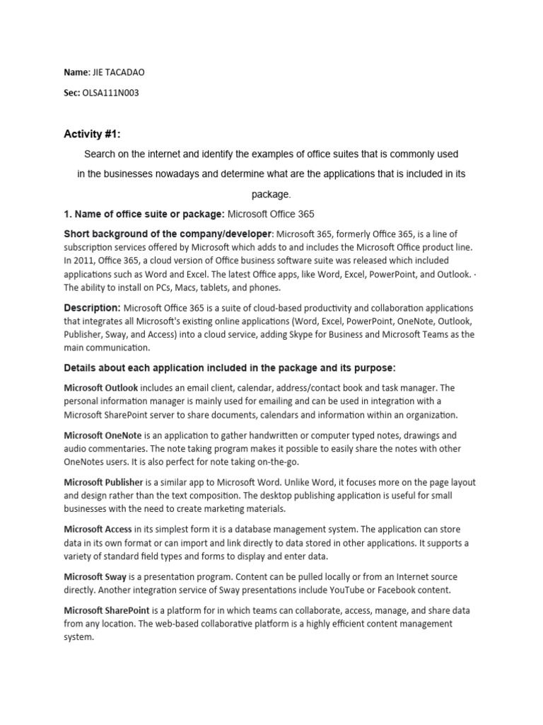Description: Microsoft Office 365 is a suite of cloud-based productivity and collaboration applications