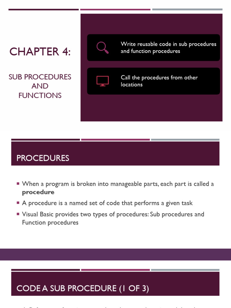 CHAPTER 4: and function procedures