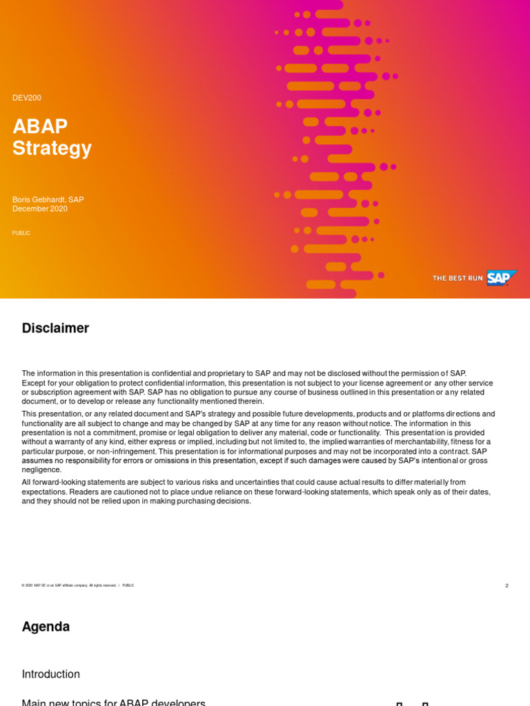 particular purpose, or non-infringement. This presentation is for informational purposes and may not be incorporated into a contract. SAP