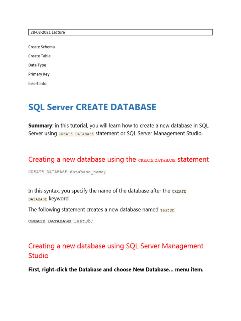 Summary: in this tutorial, you will learn how to create a new database in SQL