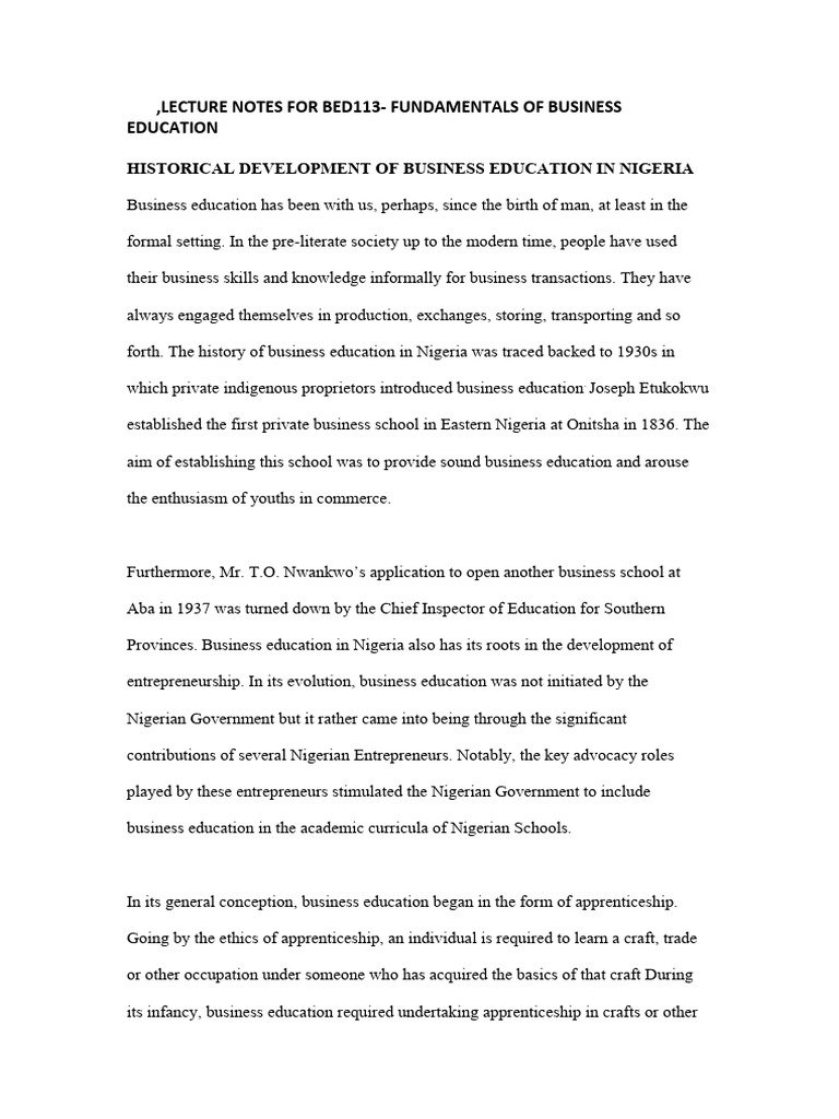 forth. The history of business education in Nigeria was traced backed to 1930s in