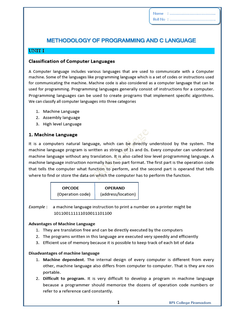 1. Machine Language