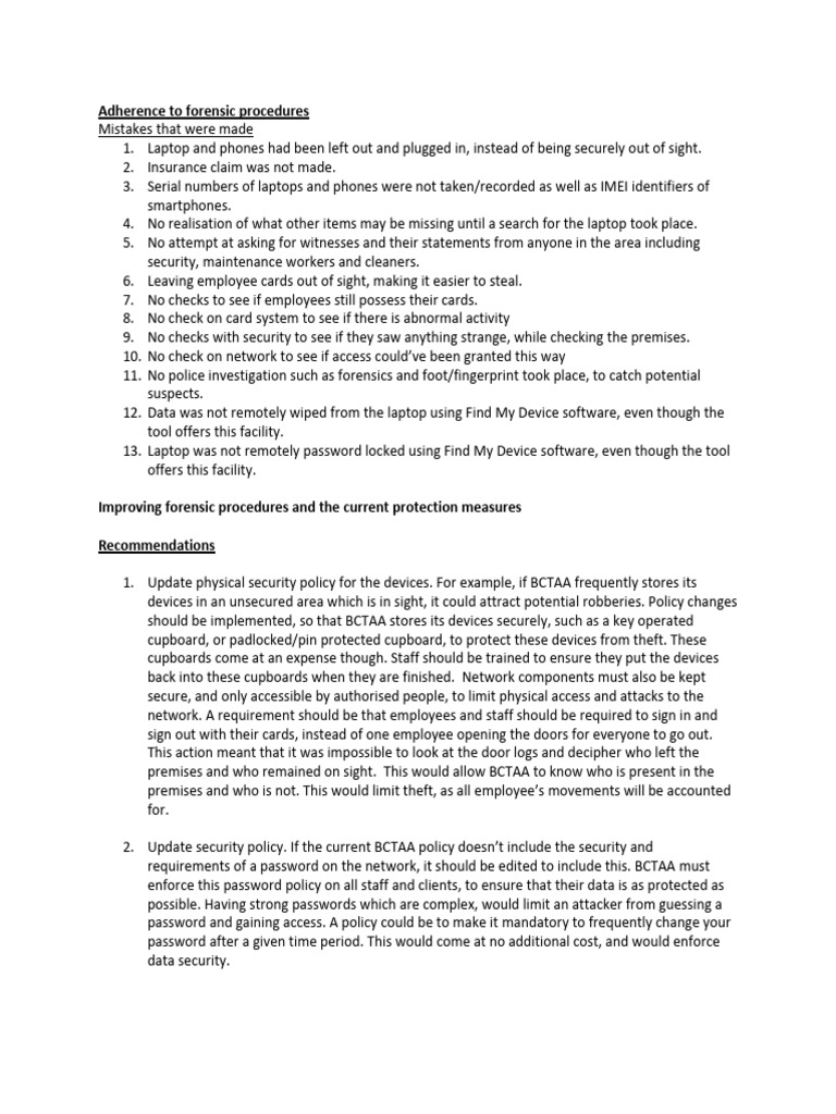 1. Update physical security policy for the devices. For example, if BCTAA frequently stores its