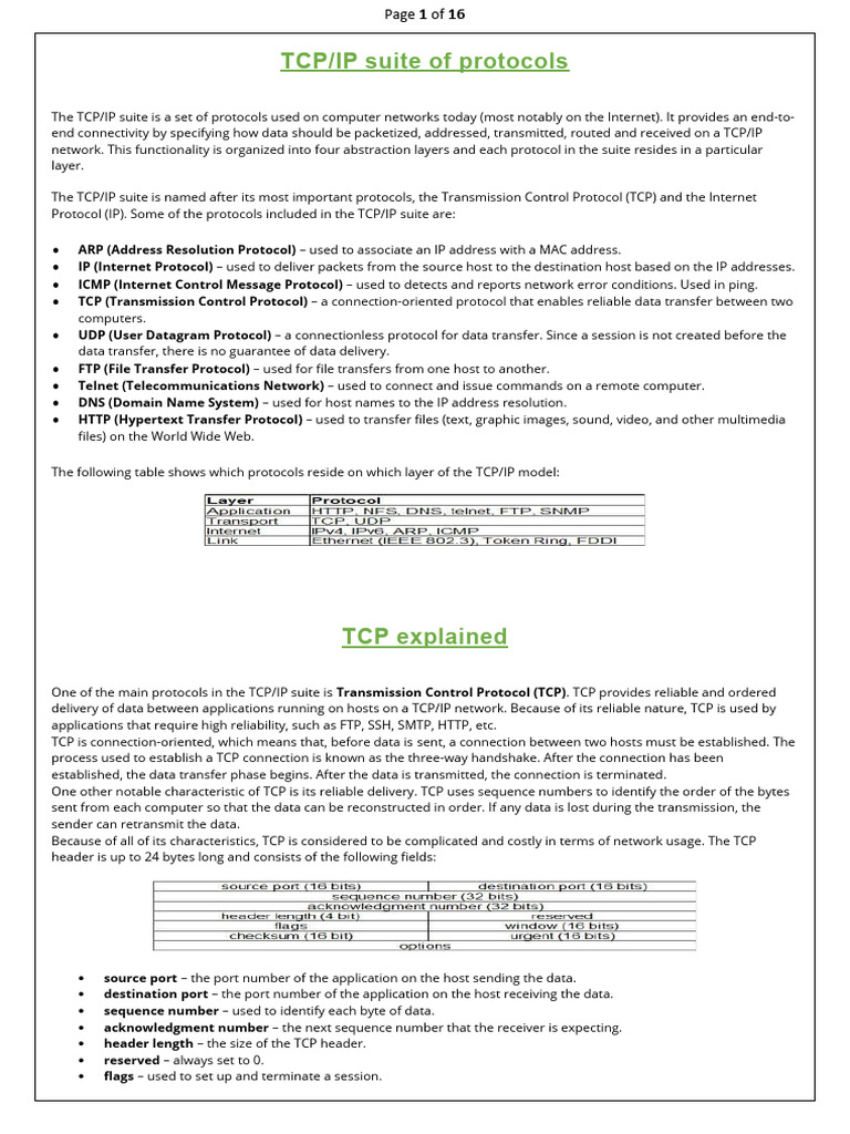 The TCP/IP suite is a set of protocols used on computer networks today (most notably on the Internet). It provides an end-to-