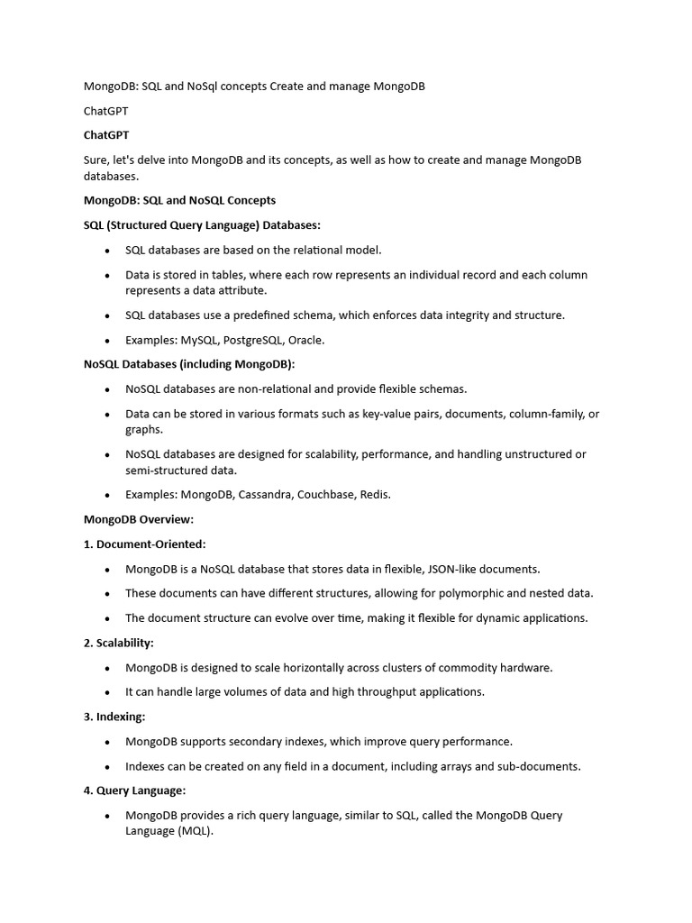 Sure, let's delve into MongoDB and its concepts, as well as how to create and manage MongoDB