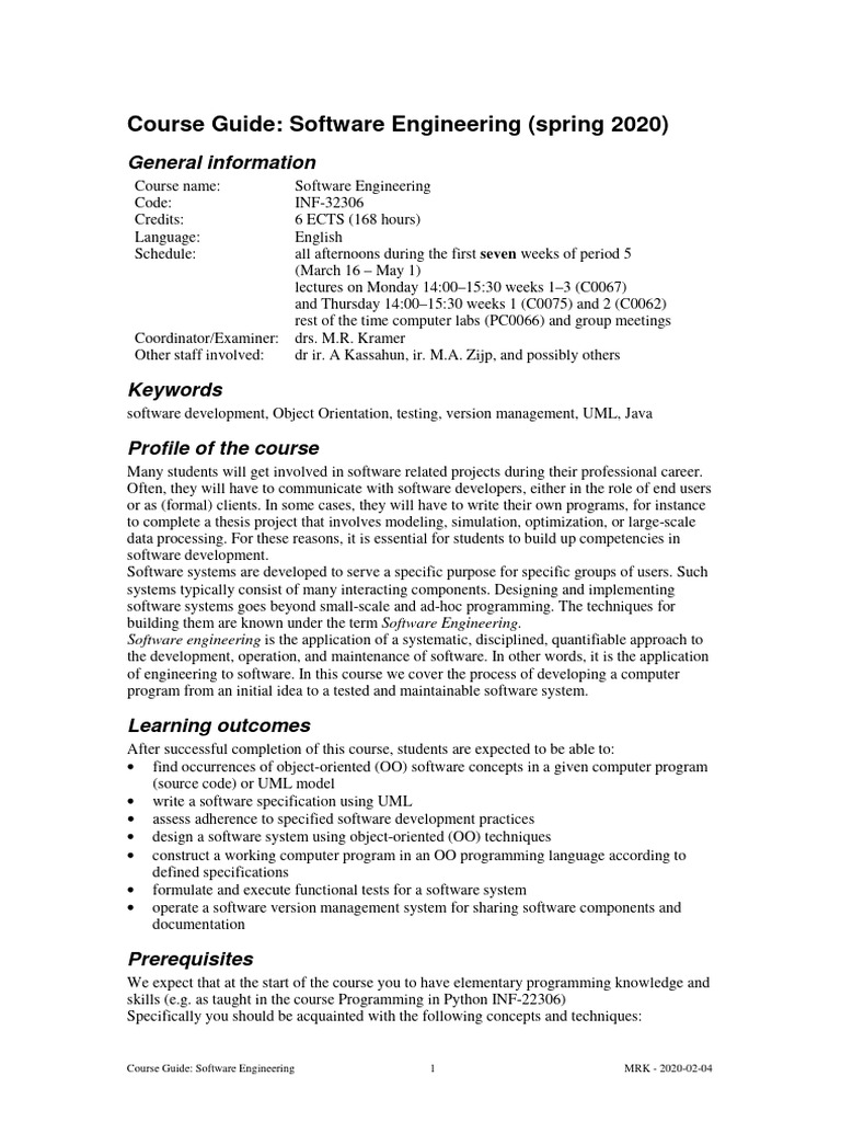 Course Guide: Software Engineering 1 MRK - 2020-02-04