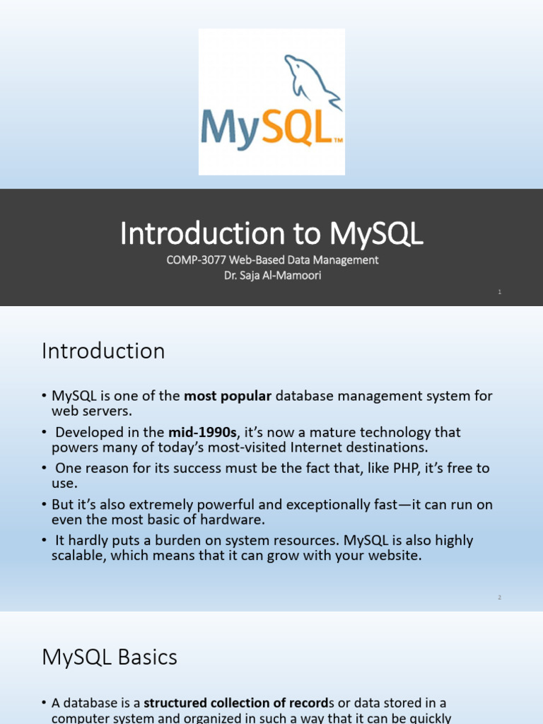 Introduction to MySQL