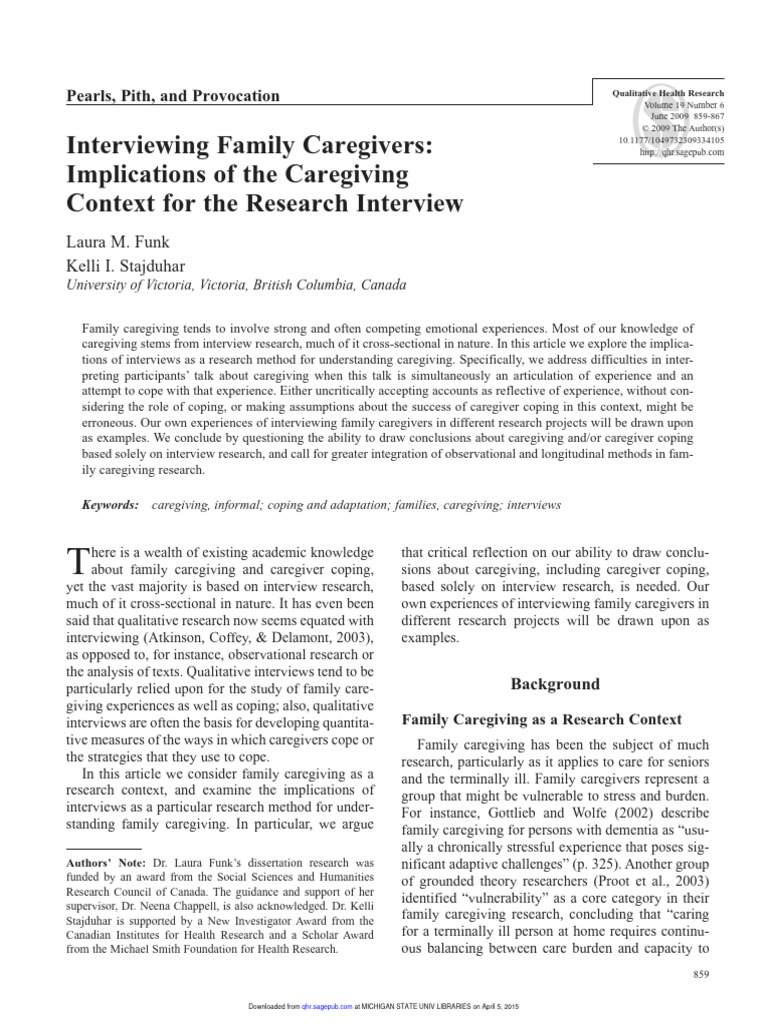 variety of factors that contributed to feelings of vul- family caregiving research that interviewing itself