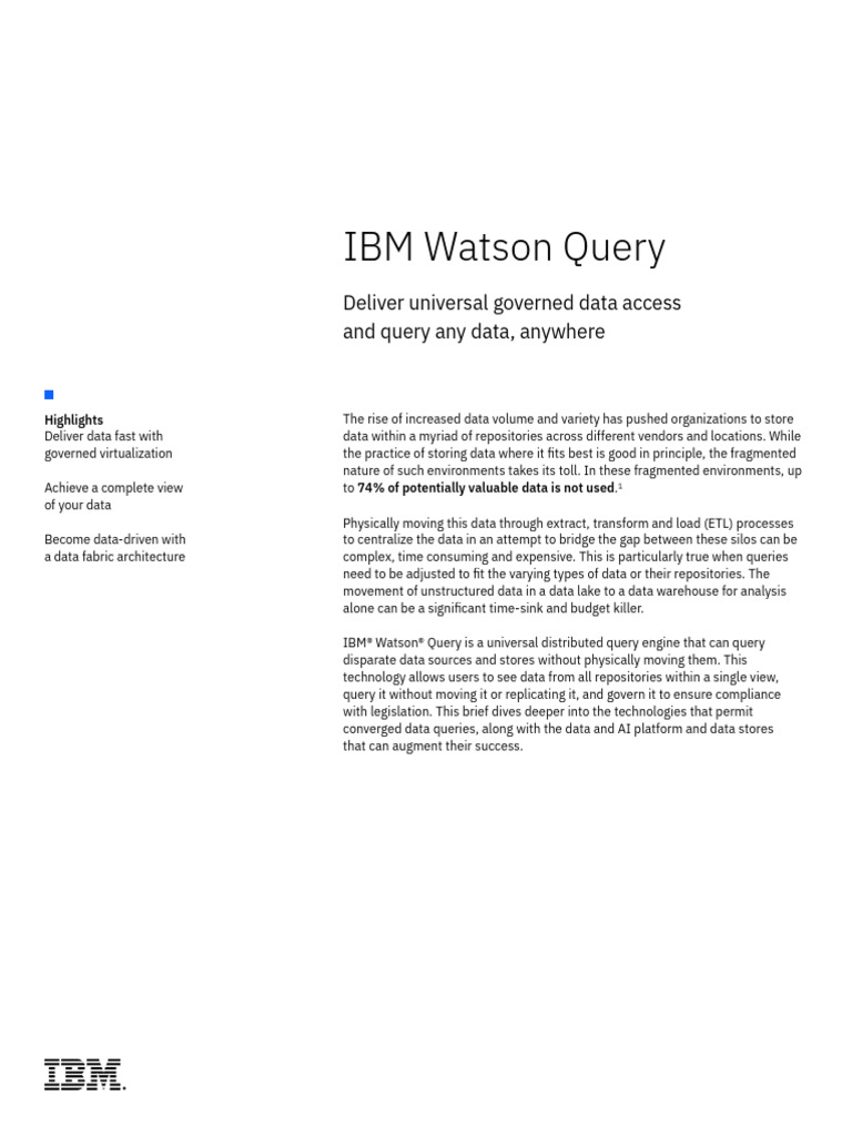 from a data lake to a more costly data warehouse, Watson Query enables you to