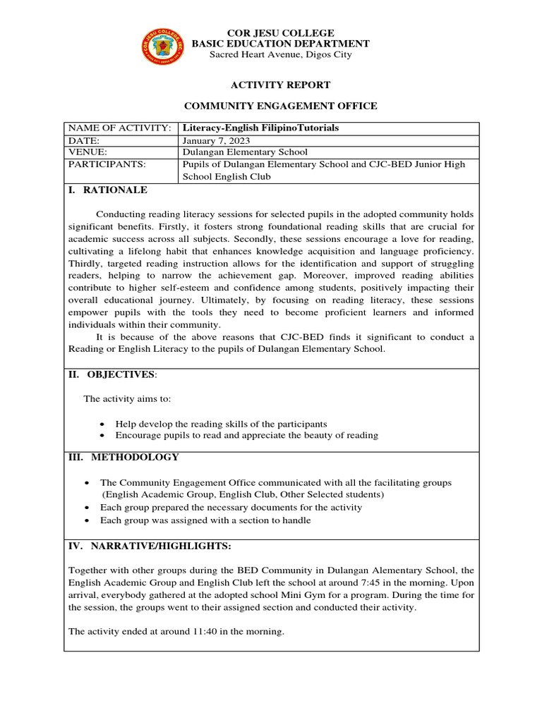 NAME OF ACTIVITY: Literacy-English FilipinoTutorials
