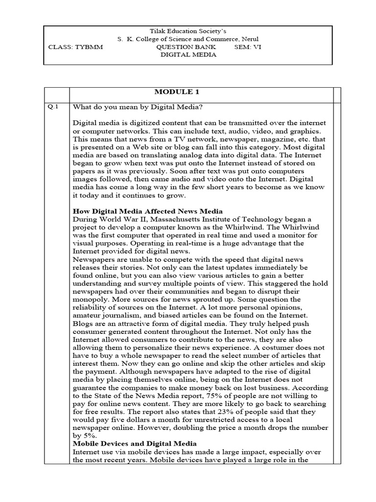 CLASS: TYBMM QUESTION BANK SEM: VI