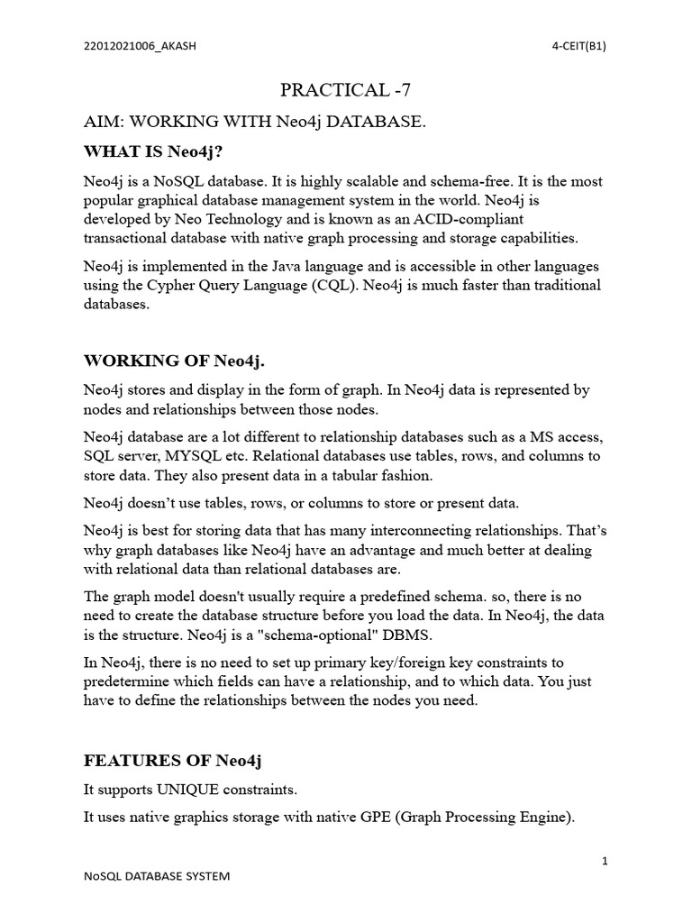 AIM: WORKING WITH Neo4j DATABASE.