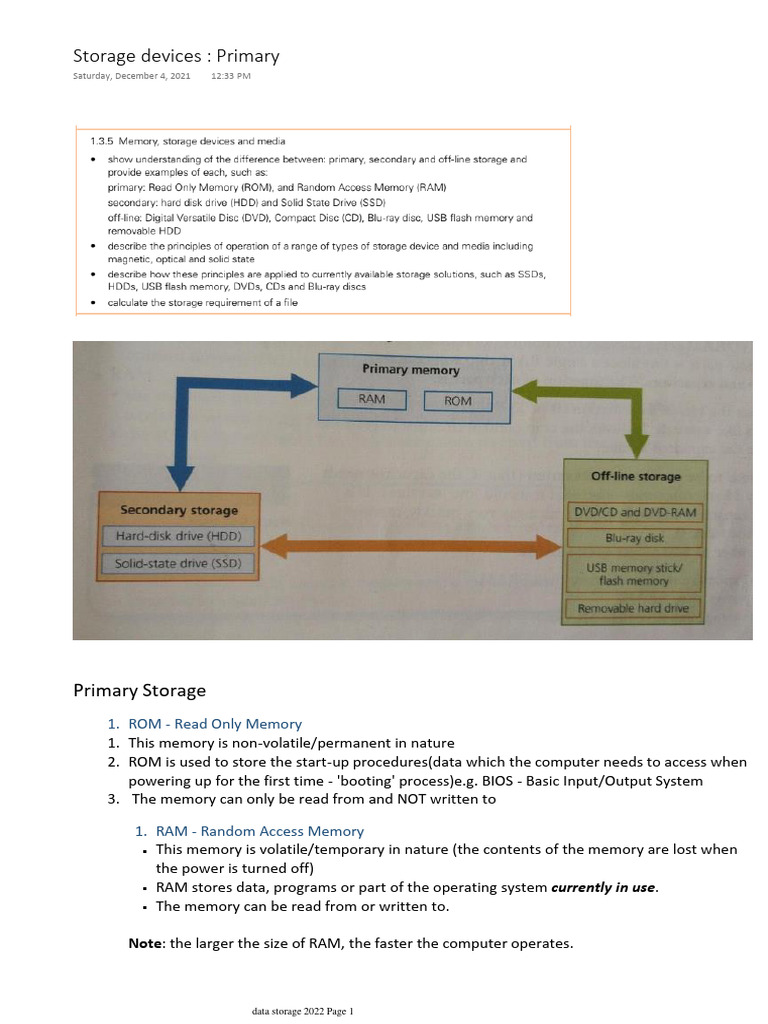 • Cloud storage: data is accessible from anywhere at anytime, provided the user has a computer and internet