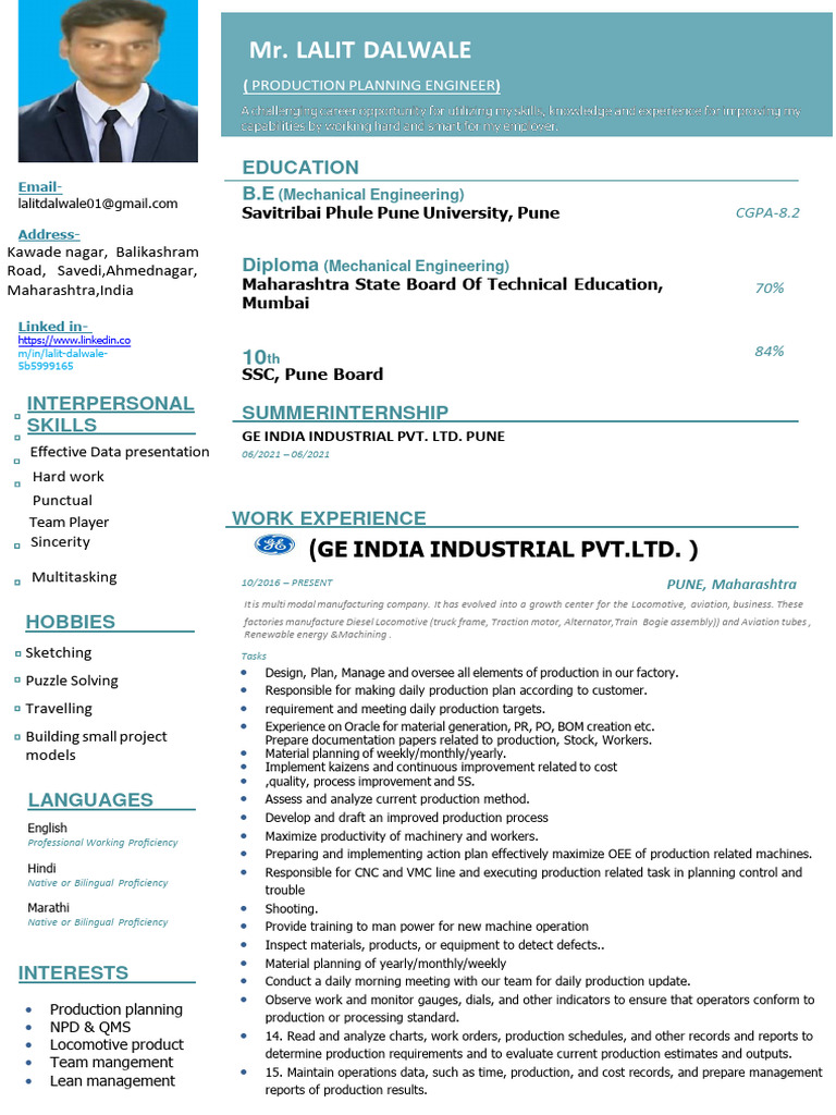 implement a lean • Attended field complaints and implemented POKA -YOKEs to avoid problem in future