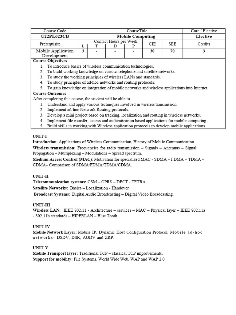 5. Build skills in working with Wireless application protocols to develop mobile applications.