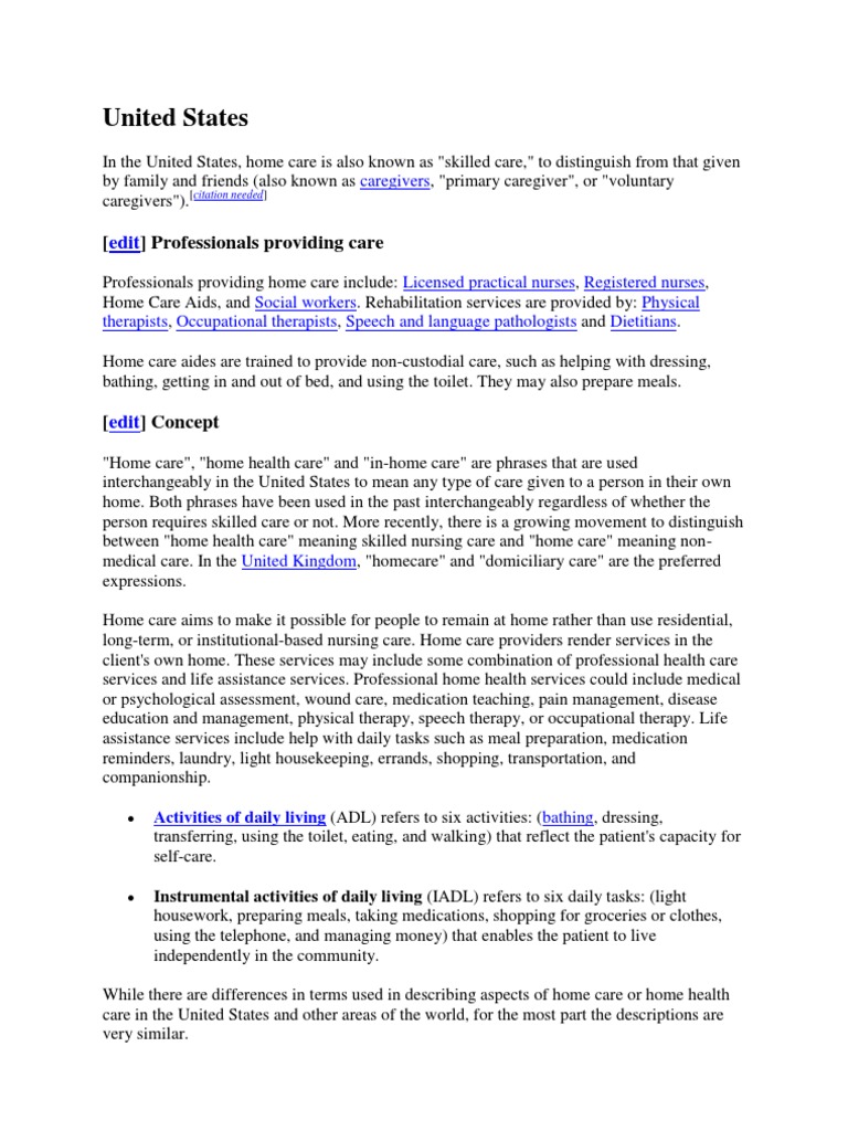 While there are differences in terms used in describing aspects of home care or home health care in the United States and other areas of the world, for the most part the descriptions are very similar.