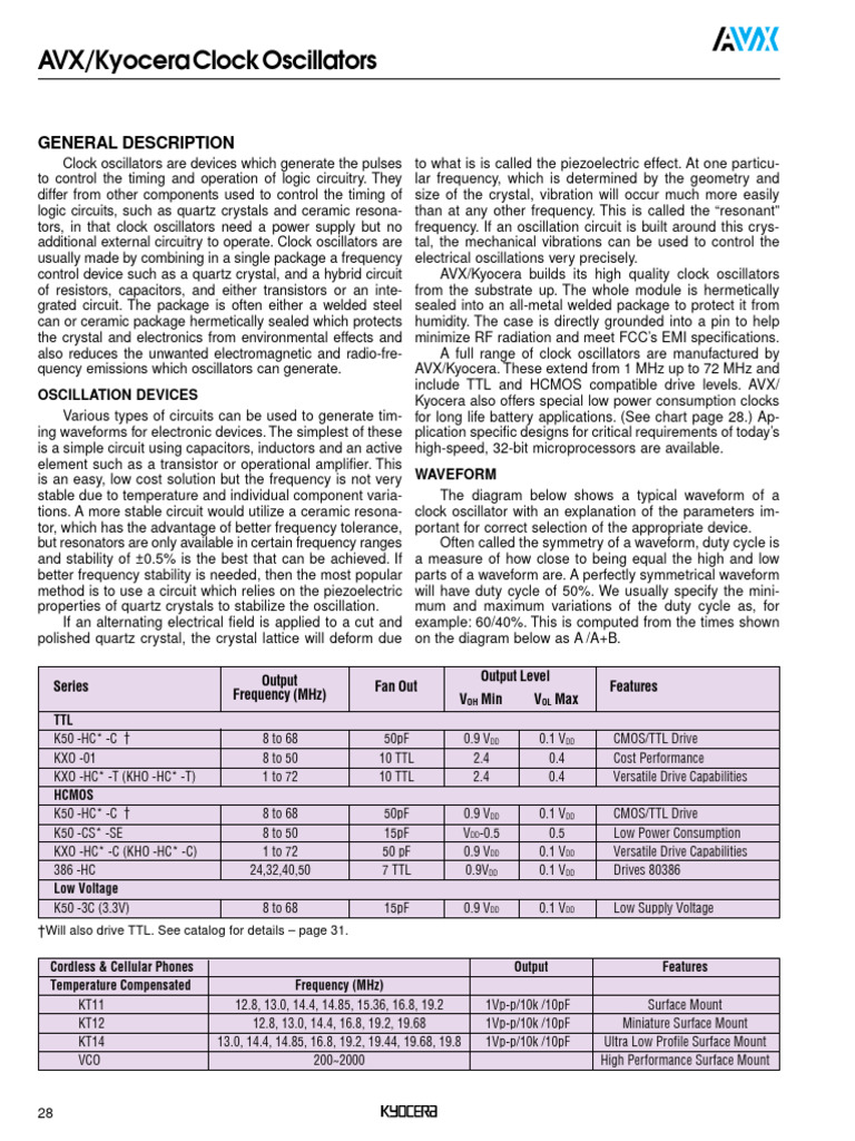 quency emissions which oscillators can generate. AVX/Kyocera. These extend from 1 MHz up to 72 MHz and