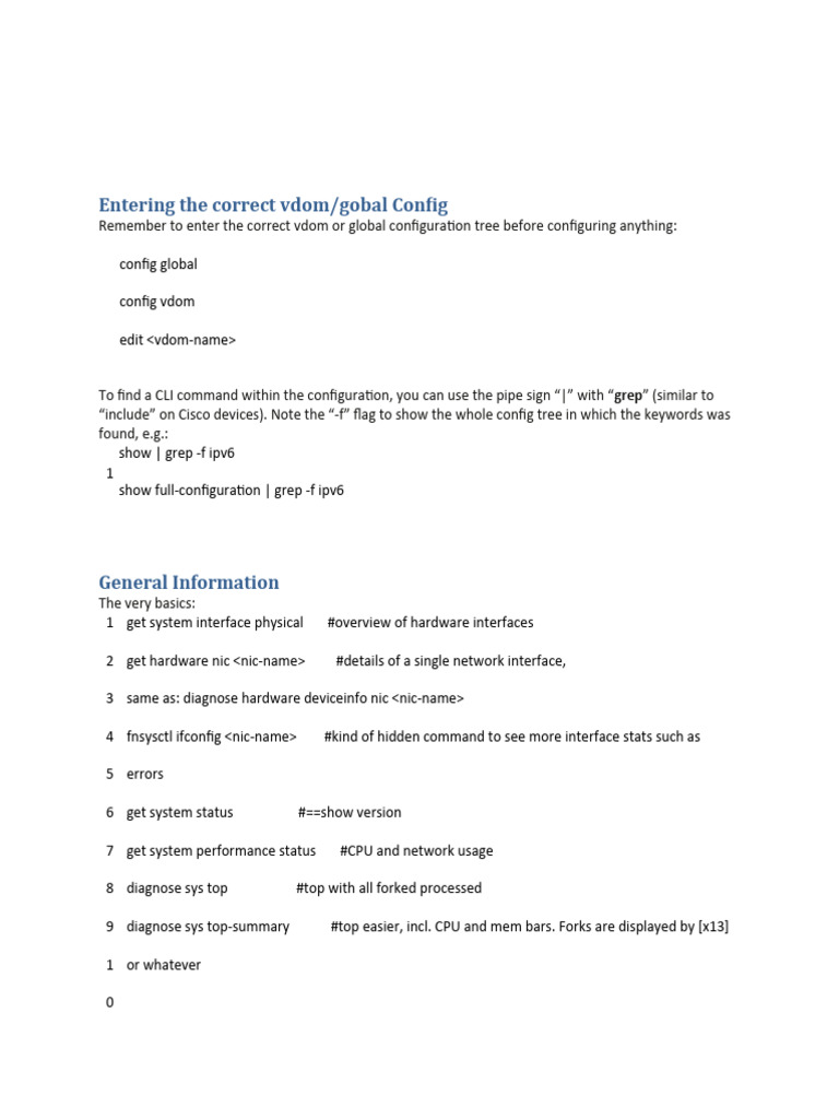 Entering the correct vdom/gobal Config