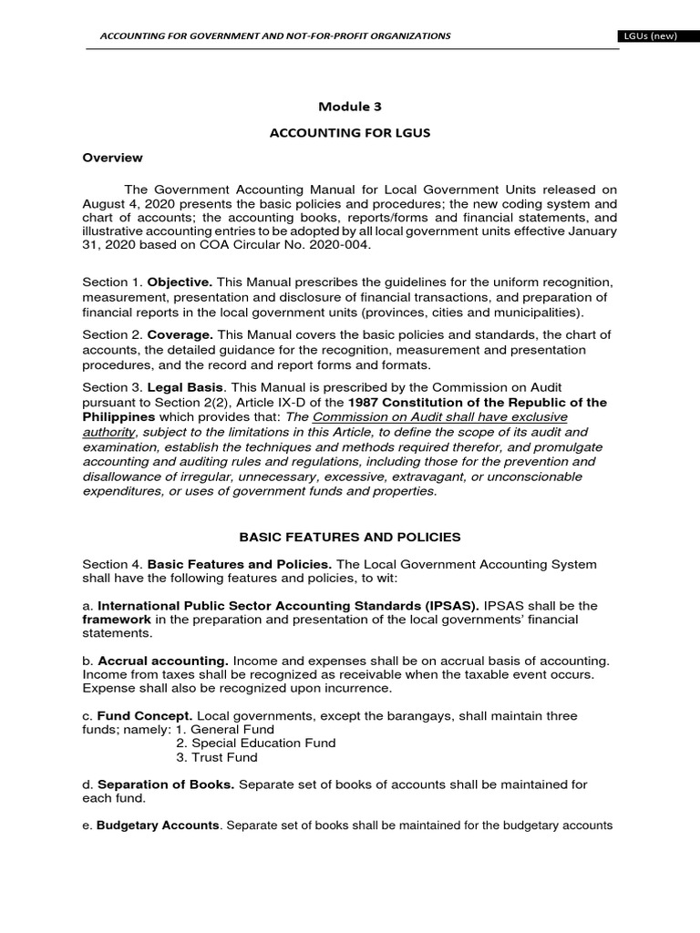 ACCOUNTING FOR GOVERNMENT AND NOT-FOR-PROFIT ORGANIZATIONS LGUs (new)