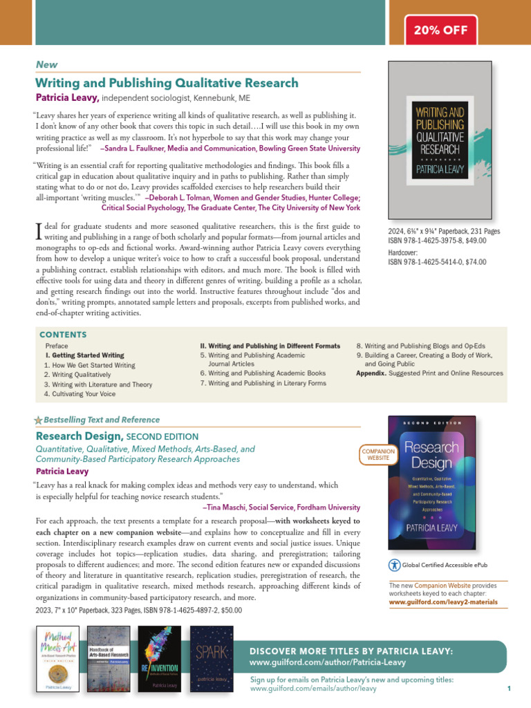 monographs to op-eds and fictional works. Award-winning author Patricia Leavy covers everything
