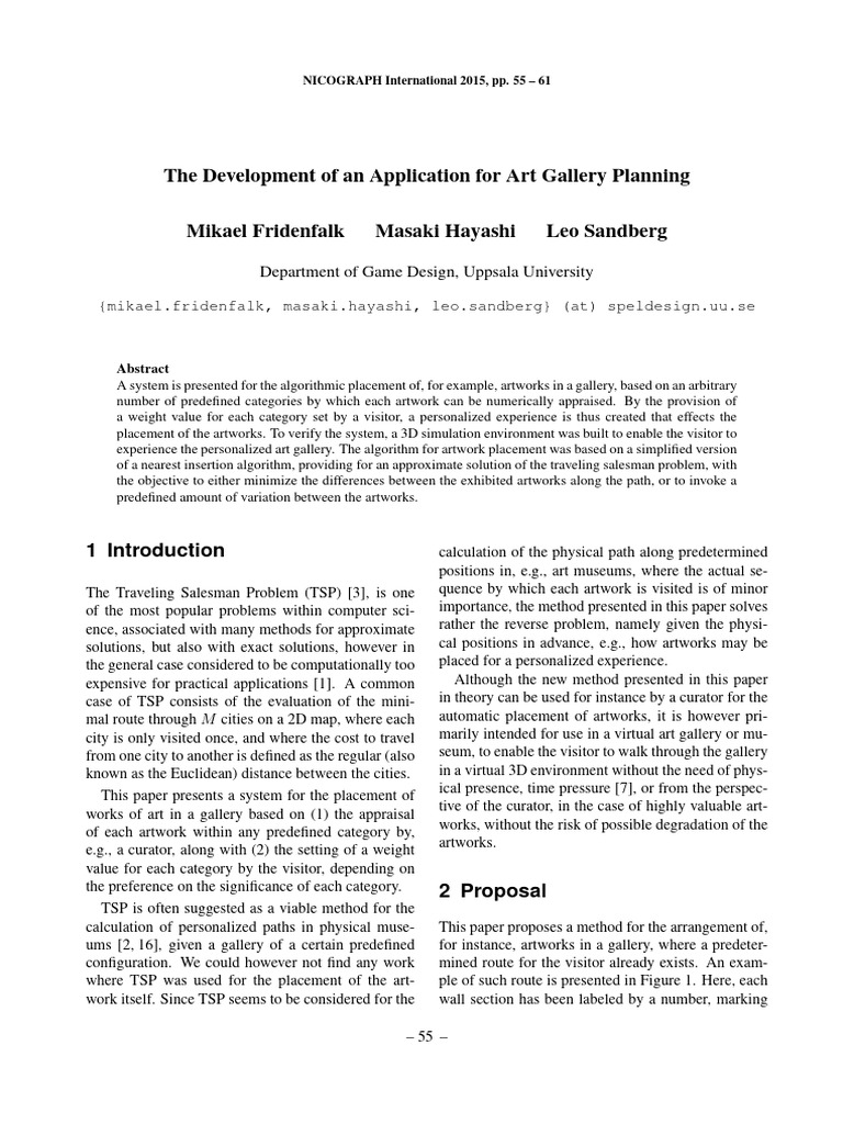 The Traveling Salesman Problem (TSP) [3], is one quence by which each artwork is visited is of minor