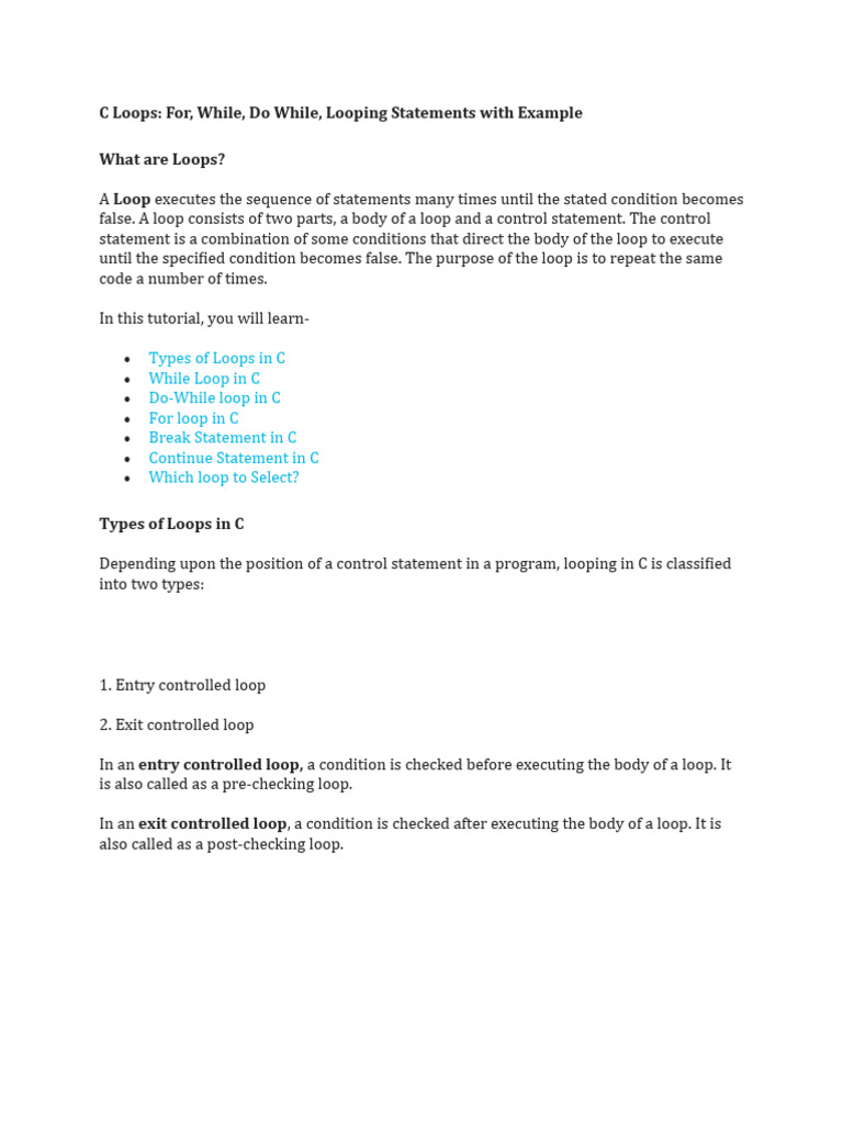 Loops are of 2 types: entry-controlled and exit-controlled.