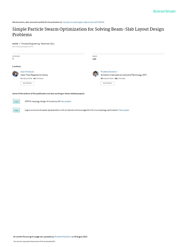 Keywords: Beam-slab layout design; rectangular floors; particle swarm optimization.