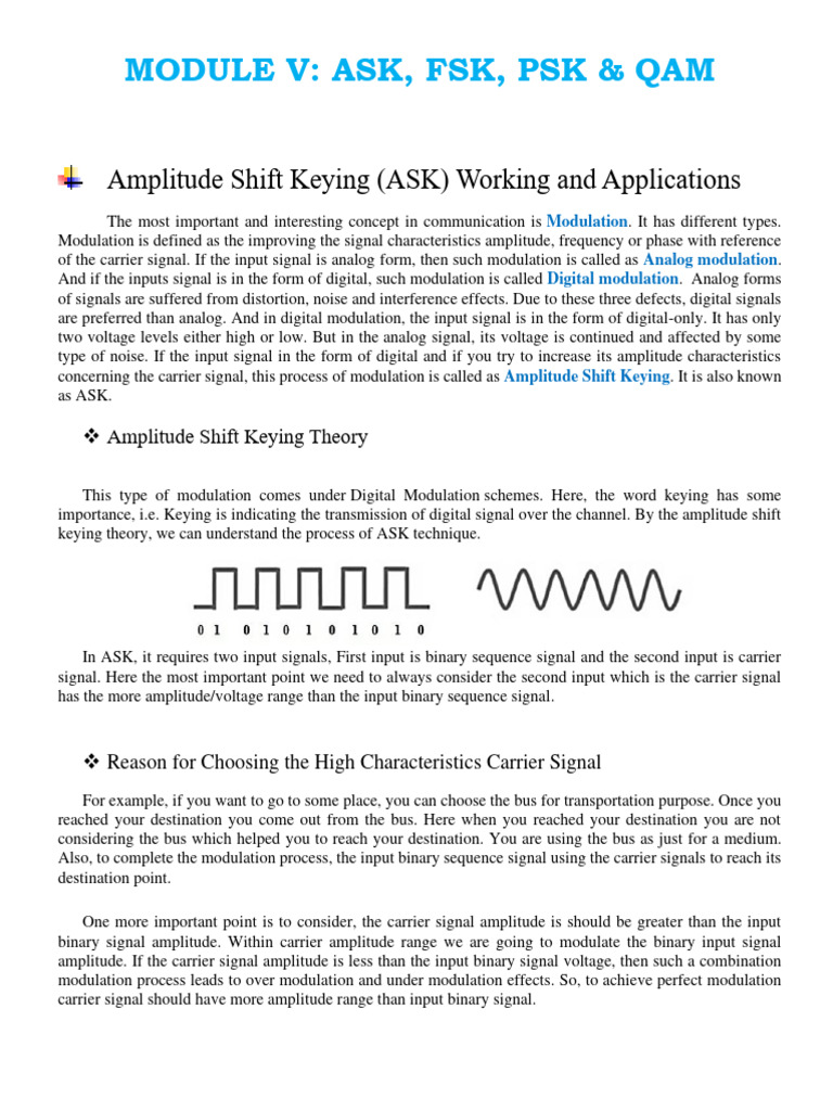voltage. In ASK, the input binary signal is multiplied with the carrier signal along with its time intervals.