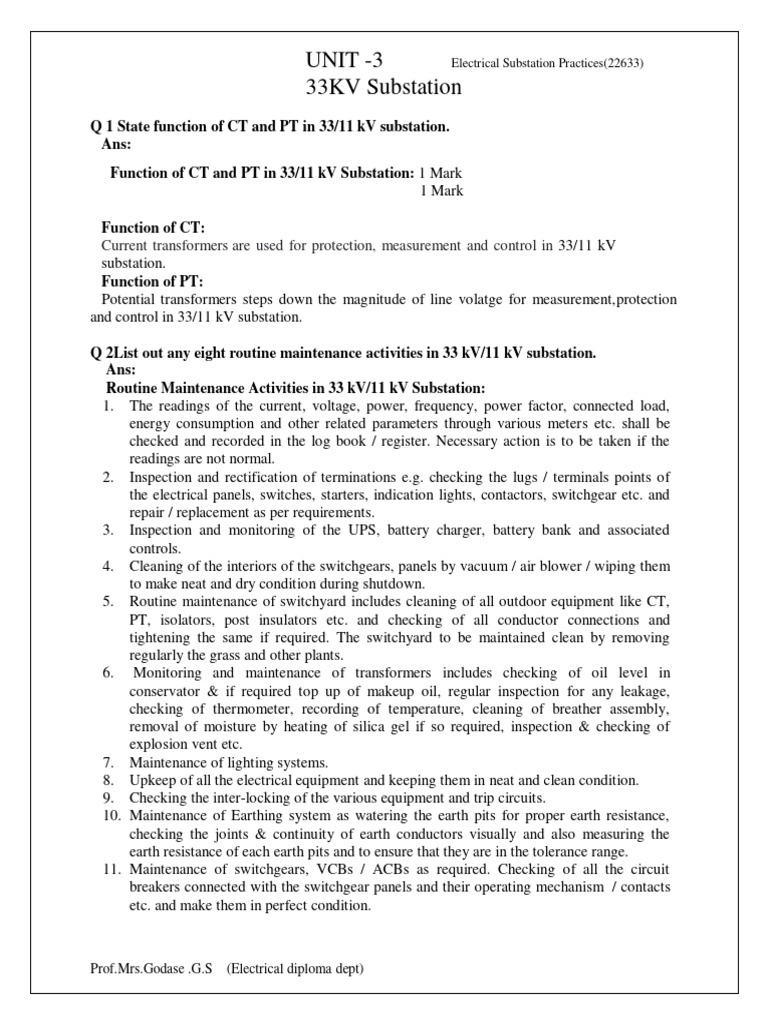 Q 2List out any eight routine maintenance activities in 33 kV/11 kV substation.