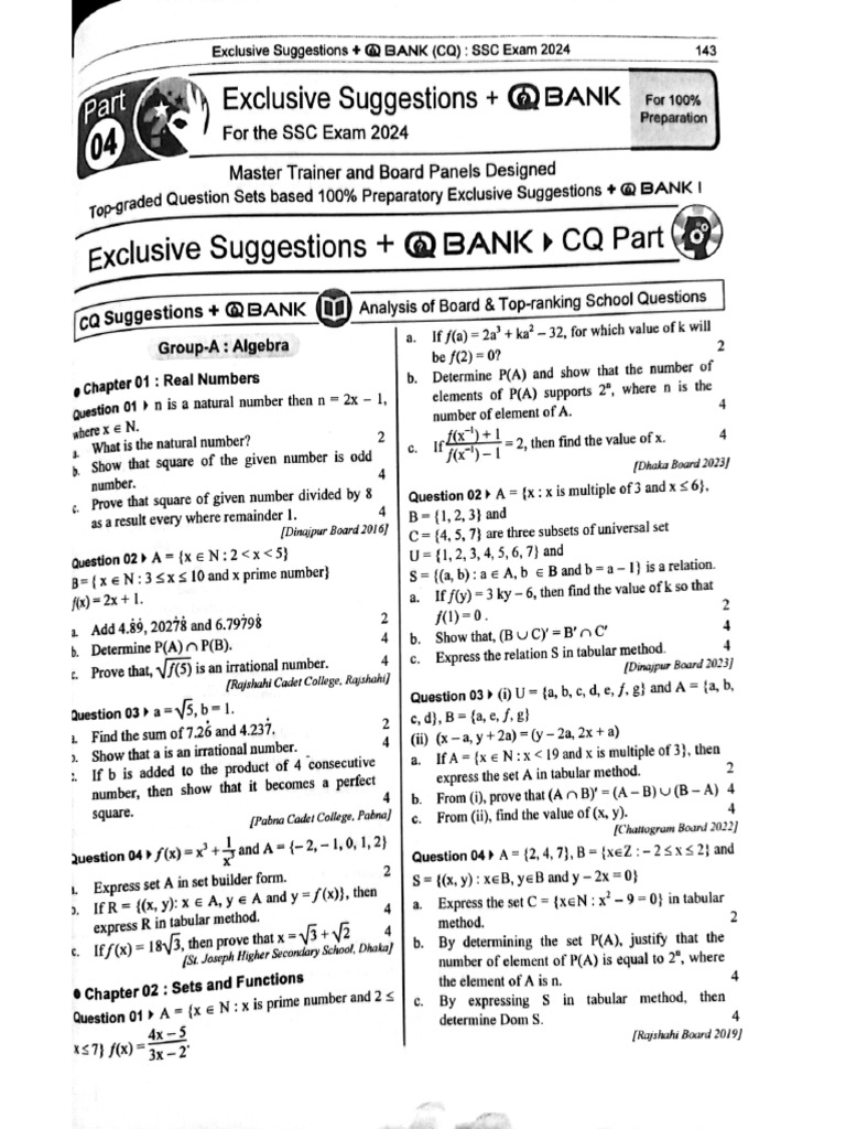 cy xy mievnt sr Vis a. IftanA~ ¥, determine the value of sinA 2 b. It x = 1, y = V2 and 6 is an acute anele, determine the value of 8. 4 cose = sinet sing the stem, ~tana. 4 Using the stem, prove that oo sineg "a [aoa Board 2 ection 99F cot 0+ cox ~ and cot cov? =P a. 1f0=460°, determine the value of b 2 b. Show that a? + b?=2 cot” (1 ~ sin’ 8). + 4 Prove that (a”— b")’= 16 ab. [Dhaka Board Question g3- sec + tand = m and V6 sin (A +B) = 20s (A~B), a. Iftan (60° - 6) = $e find the value of ® 2 2 b. Prove that, cosecd =e. 4 Find the value of sec 4B 4 (Pegs Board 2297 Question 04 » P= coset ~ 1, Q= cosee} + I and R = see ~ tana. a. Prove that, cox2C = 2eos!C— 1; C= 30° 2 b rover 4/8 = 1 = 4 c. R= 4, then find the vale of coset 4 Mme Bord Question 05 > p(x) = sex and g(x) = tnx ‘a. Find the whole the surface area of a cube with diagonal 9 cm 2 b. Solve q(0) + plQ) = 3; 0° < 0 < 90° 4 x= 40) gO) then prove that S54 Aso an. [Sythe Cadet College, Svihet)1 14 ‘NéGsTON ESC Creative Mathematics syand coseed ~ 6004 ‘Question 06» sect = ¥. tanh Shere Aa ae te ae xd the value of ta 2 60". 4 tS SE- 22M ten show that vey Vie? 1 fatueofsin + cosa using the sem &Datemin te vane i a Male el yRu ‘Question 07 > x = yandy = sind. a Prove that, tana + cot b If x = cosecf} ~ cot, then fin Find the vatue of 8, when 4y? — (24 = secA.cosech 2 idthe value of secf}. 4 way = 4 Noon Scho! & College, Dhaka] question 08 » P= tand + sind, q = tand ~ sind, and = cos‘ — sin’. 1 i a. Prove that Sata tT” 2 b._ Prove that, (p +@)"= 16pa(P ~ a) ©. fr =2-— 5c0s®, then find the value of 8, where ® 4 san acute angle. isan act amt su Fe Sha & Cal Da) ‘question 09 cos + co =p, cold — cos = q and 2sin*® 4 + 3cos8 = M. 2 IfeoW(A ~ 25") = I, Find the value of A. 2 b. Prove that, p’~ q' = 4/pa 4 cc. IFM=3, then find the value of 0 [where 0° << 90°] 4 ‘[Moinamati English School & College, Cunilla Cantonment) Question 10 > tanA + sinA =p and tanA -sinA = q a. Show that p+ q=2sinA.secA 2 b. Prove that p’-q?=4Vpq 4 p_ 2+ P= \. eh Fa hen find the value of A; where 0 A tree AB is broken by a storm at the point © such that the undetached broken part makes an angle 6 with the ground and touches the ground at the point D. 8. The length ofthe two sides of a triangle are 7 em and 12 cm, and the angle included between them is 30°, Find the area ofthe triangle 2 b. Show that, (2 _BDY_ 1 ~ cose (is wo) 1 cos0) 4 €IFBD = 103m and @ = 30, the whole tree 30°, find the length of 4 (hata Board 2020) JOGESTIONS + @BANK_ vaint A of the bank of 8 Fiver i the a tree of 65 m long is 452, ther bank of the river at the eck + meter Flom the it A, th the point D. ‘ de tar segment is Om §4. CM. and of circul fe a He et ey etenine He mle ha subiended bythe ae : the value of X. Find te the perimeter of the triangle that Delemy by the broken part and standing part of Y round. A the tree with the gr [ajshahi Board 2015) fon 03 » A tree AB is broken at the point O by Quest makes an angle 30° with the ground a the point C ata distance 10/3 metre from the foot. Find the value of tan 2C- 2 0 coy _1+sin€ b. show that (BeBe) “T=sin 4 Determine the full length ofthe tree. 4 {hata Board 2017 ‘question 04 > A pole of length 18 m is broken by a Goan such that the undetached broken part makes an 40° with its other standing part. There is a tower between, ‘wo mileposts M and N. At the vertex of the tower the angle of depression of M and N are 60° and 45°, a. If the angle of elevation atthe top of the minar is 30° and the length of the shadow of the minar is 15m, then find the height of the minar. 2 b. Determine at which distance from its foot the top of the pole touches the ground. 4 ¢. According to the stem, find the distance of the foot of the tower from the milepost M. 4 [Mircapur Cadet College Tangs! Question 05 > From a helicopter above a point 0. A and B two kilometer posts, the angles of depression of the two points A and B are 60° and 30° respectively. a, Drawa figure according to the stem. 2 b. Find the height of the helicopter from the Fd ‘ ¢.- Find the direct distance from the poi Min the rm the point A of te Quest [Cumitla Cadet College. Cuil westion 08 > The distance between two pats blaces A and B is 1500 meter. From an seropi + Point P, the angles of depressions of the two points * and Bare 60" and 30° respectively, raw the fi rig ne » fran igure accordirig to the above Find i Find a height of the aeroplane from the ground the perimeter of APAB, ‘(igaremisa Noon School & College. Dojon 07 ¥ A 60 metres long. tee broke! weston the broken pat makes an al ed a Siding part and touches the proud wa the Find the Feneth of the shadow of the tower Feielt i 20 mand angle of elevation 3°” b._Find the length ofthe broken part of the tee. 4 tthe broken part makes an angle 4° with ground. determine what would! be the len Standing part of the tre. sat (fsa Nor Momma Pai ile Pay ‘question 08 > A pole of length 18 meters is broken b Storm such that the undetached broken part makes an dose 30° with its other standing part. There isa tower petween two mileposts M and N. At the vertex of the tower the angle of dispersion of M and N are 60° and 45" respectively a. Ifthe angle ofthe elevation ofthe top of the Minar is 30° and the length of the shadow ofthe Minar is 15 meters, then find the height of the Minar. 2 b. find out at which distance from its foot the top of the pole touches the ground. 4 ¢. According to the stem, find the distance of the foot of the tower from the milepost M. 4 [Moni School & College, Dhaka] Question 08 > The angle of elevation of a pole at any point on the ground is 45°. By moving 15 m towards the pole angle of elevation becomes 60°. 2. Indicate the angle of elevation by drawing a figure. 2 Find the height of the pole. 4 ¢. Find the distance of the point from the first point ‘on the ground where elevation 30°. 4 [Edina School & College, Cella] ‘Que