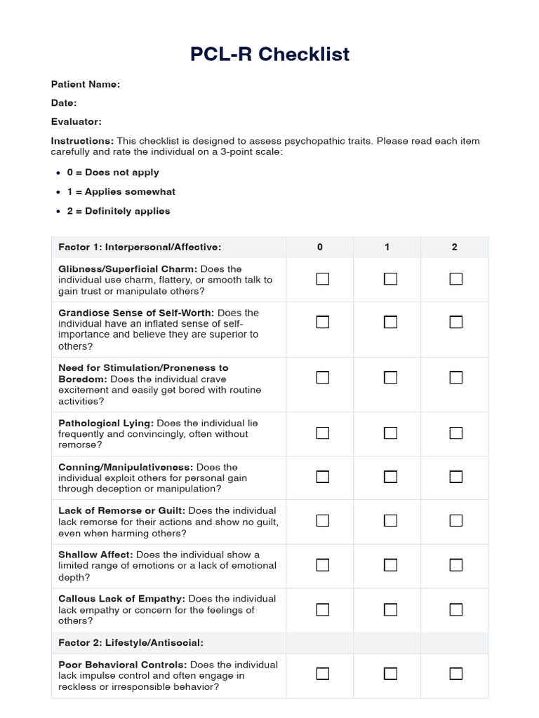 Instructions: This checklist is designed to assess psychopathic traits. Please read each item