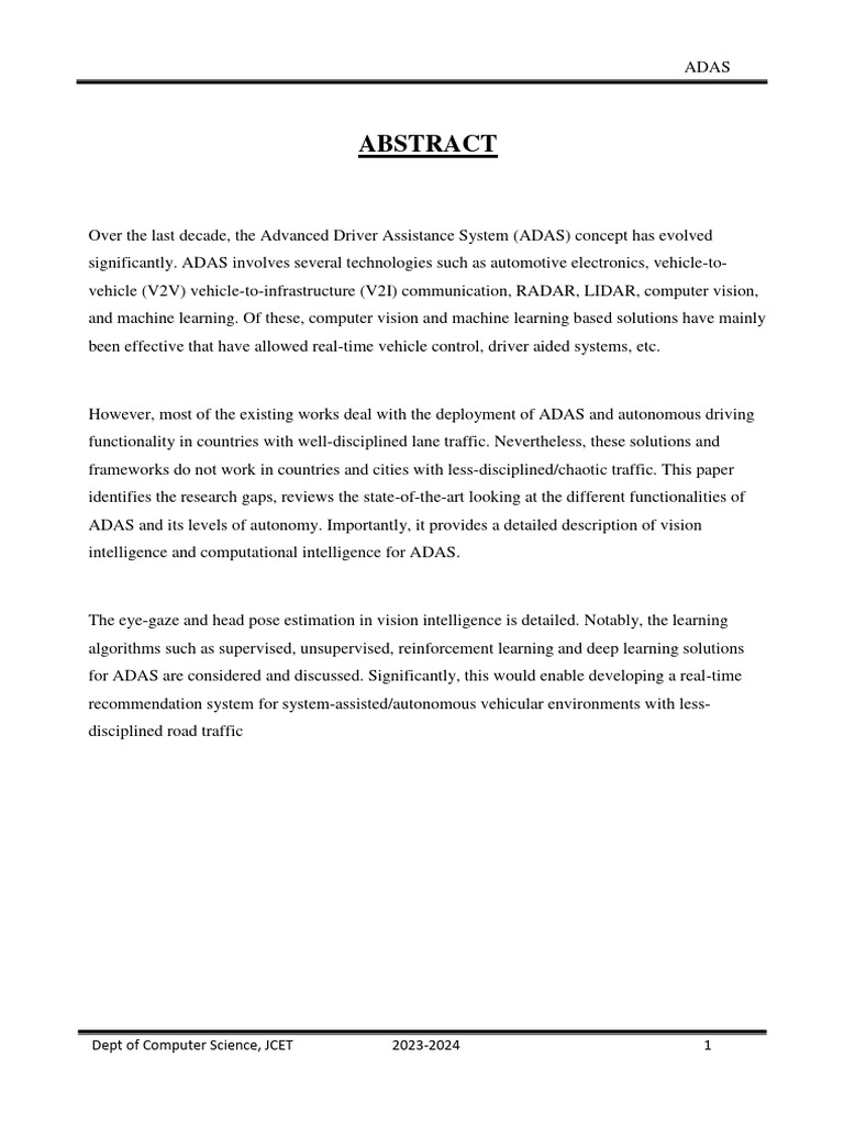 obstacles that must be overcome for widespread adoption of ADAS. However, with continuous