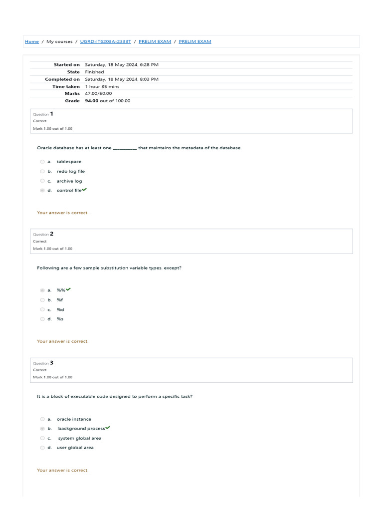 Home / My courses / UGRD-IT6203A-2333T / PRELIM EXAM / PRELIM EXAM