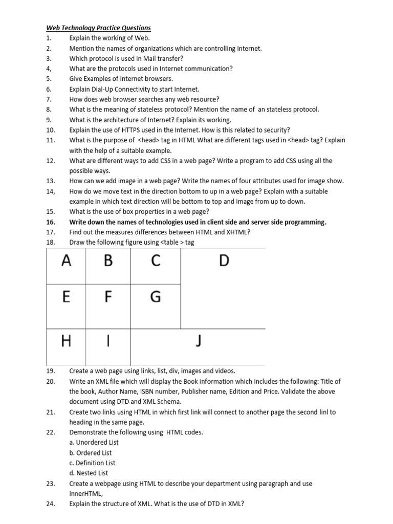 Web Technology Practice Questions