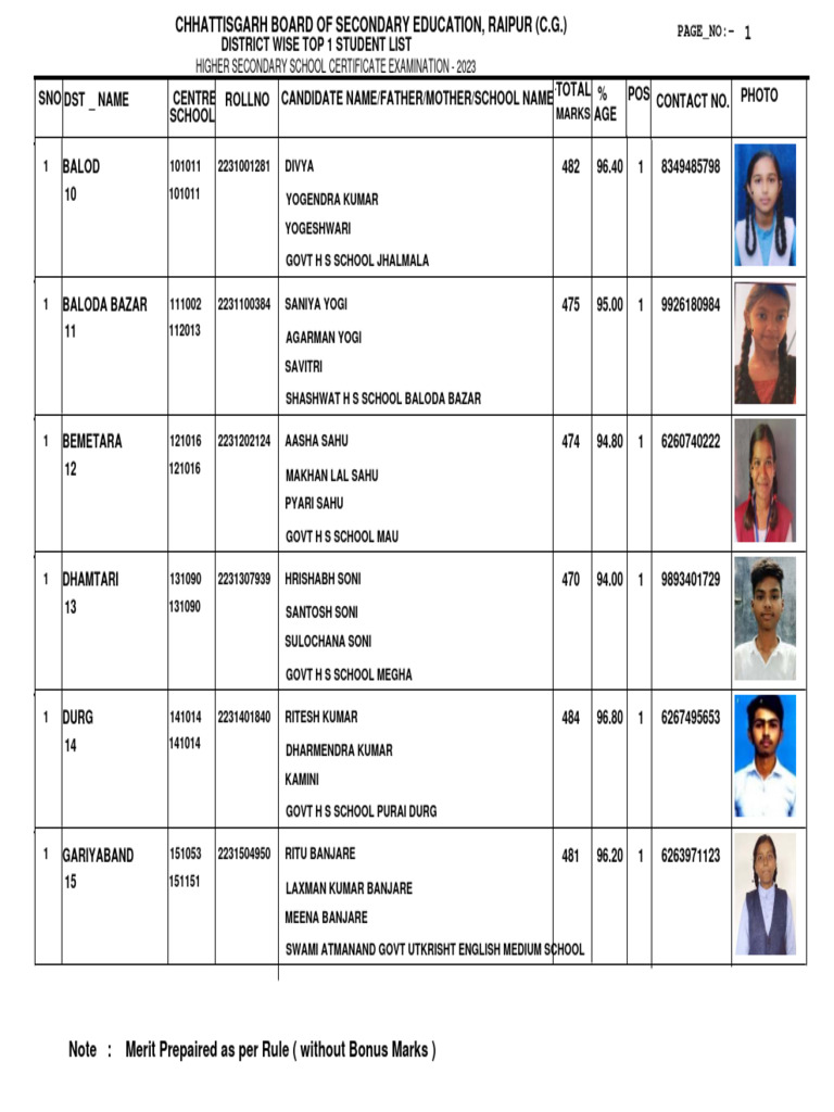 1 GARIYABAND 151053 2231504950 RITU BANJARE 481 96.20 1 6263971123