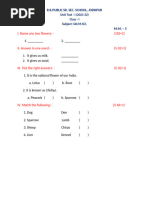Q – 2 Answer any 5 out of the given 6 questions (1 x 5 = 5 marks)