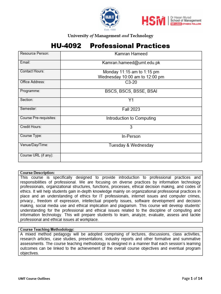 UMT Course Outlines Page 1 of 14