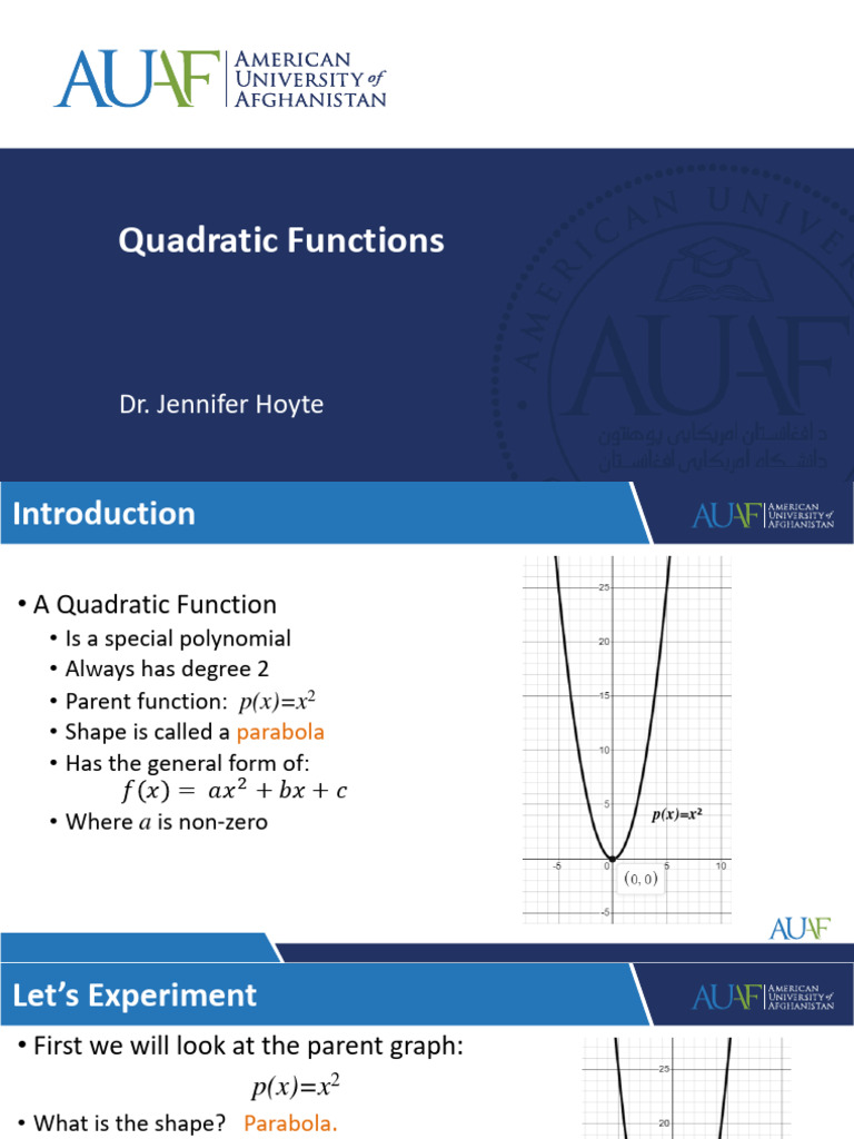 • The general form of a quadratic function is: 𝑓 𝑥 = 𝑎𝑥 2 + 𝑏𝑥 + 𝑐