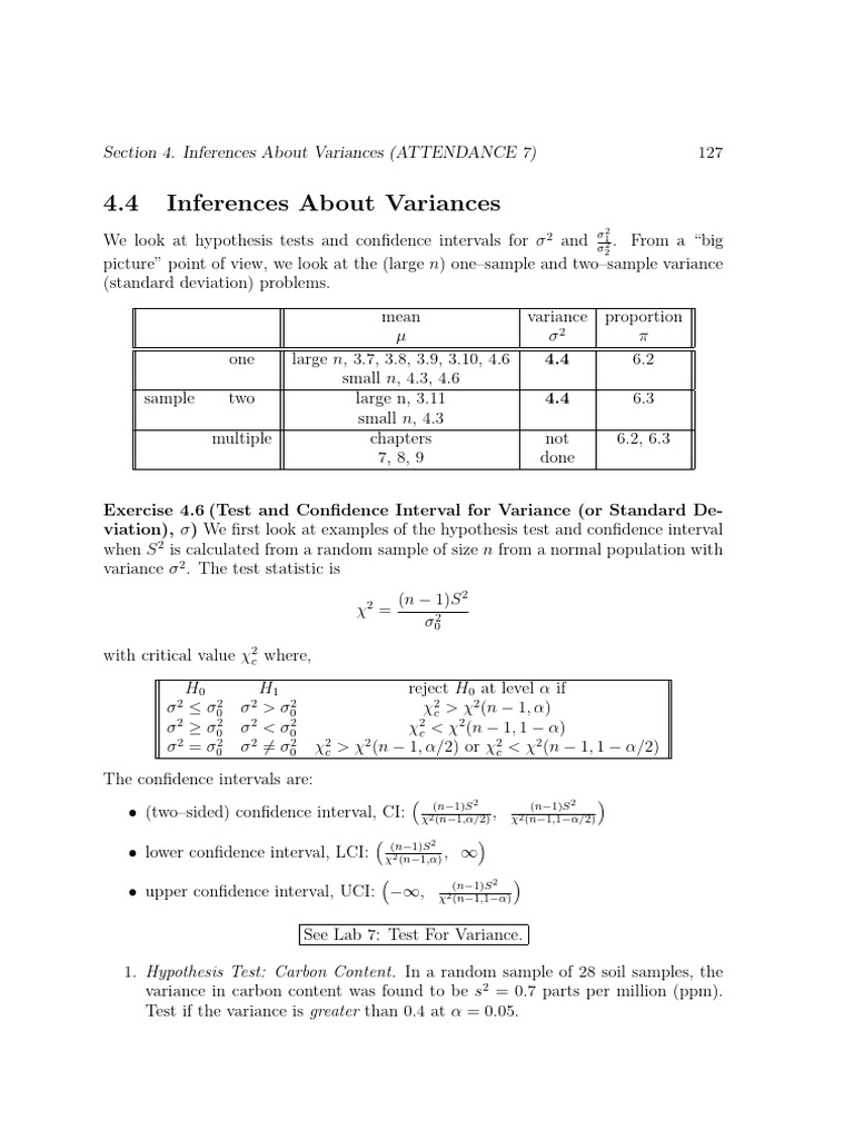 Section 4. Inferences About Variances (ATTENDANCE 7) 129