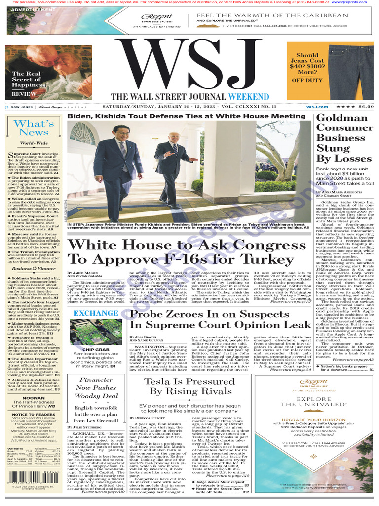 * * * * * * * SATURDAY/SUNDAY, JANUARY 14 - 15, 2023 ~ VOL. CCLXXXI NO. 11 WSJ.com HHHH $6.00