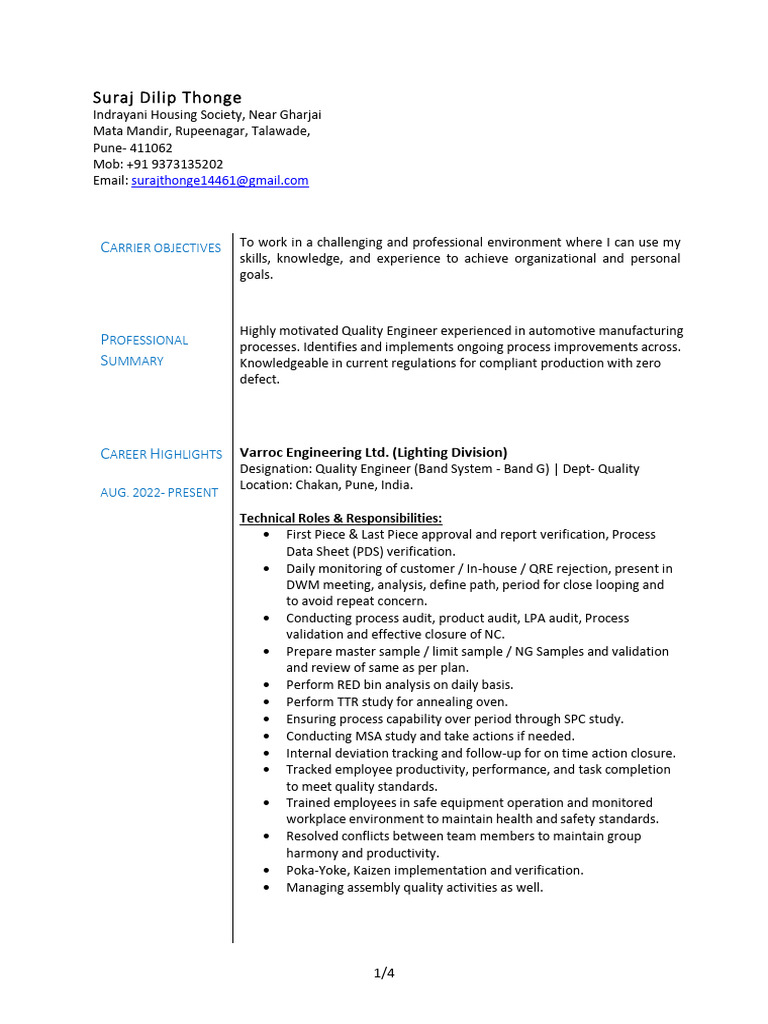 Highly motivated Quality Engineer experienced in automotive manufacturing