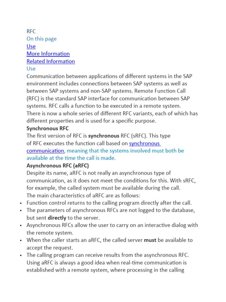 systems. RFC calls a function to be executed in a remote system.