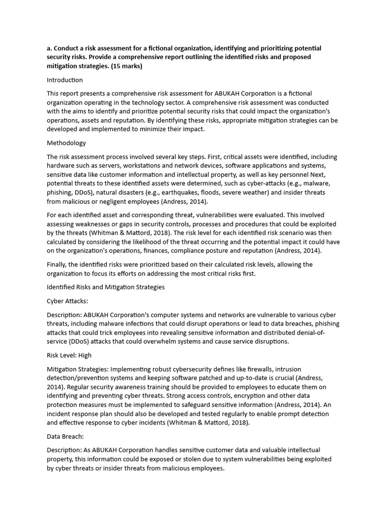 This report presents a comprehensive risk assessment for ABUKAH Corporation is a fictional