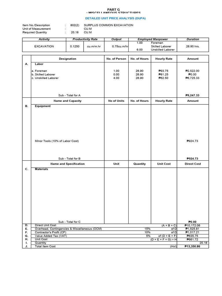 DETAILED UNIT PRICE ANALYSIS (DUPA)