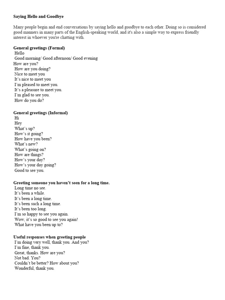 Many people begin and end conversations by saying hello and goodbye to each other. Doing so is considered
